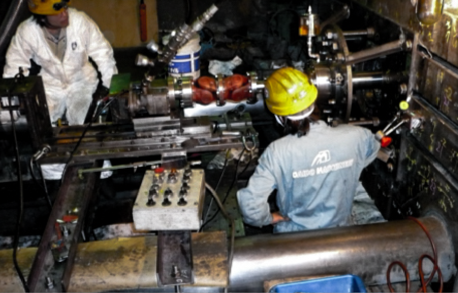 お客様の生産現場で機械加工を行います。設備の解体・移動にかかる工期の短縮、およびコストの削減を実現します。